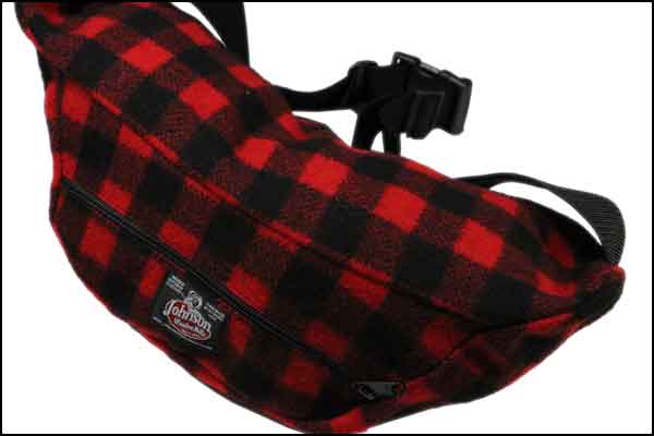 JOHNSON WOOLEN MILLSstyle: WOOL CHECK FANNY PACKmaterial: WOOL 85% . NYLON 15%color: RED/BLACKsize: H/200mm . W/450mm . D/150mmprice: 8800yenMade in USAジョンソンウーレンミルズのウールチェック柄のウエストバックです。