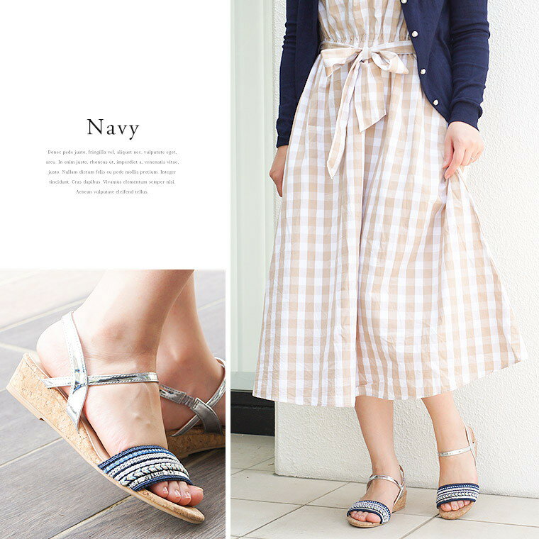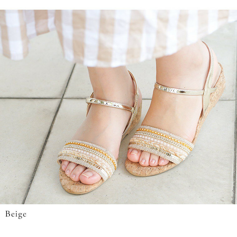 これからの季節にぴったりなコルク巻きヒールと適度な肌見せで、美人な足元に。