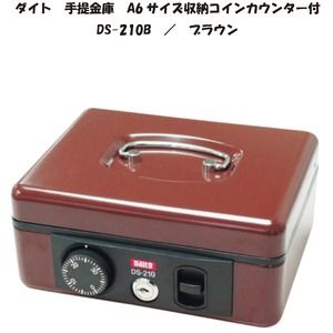 ダイヤル式 手提げ金庫/コインカウンター付 【A6サイズ収納】 ダブルロック式 ブラウン